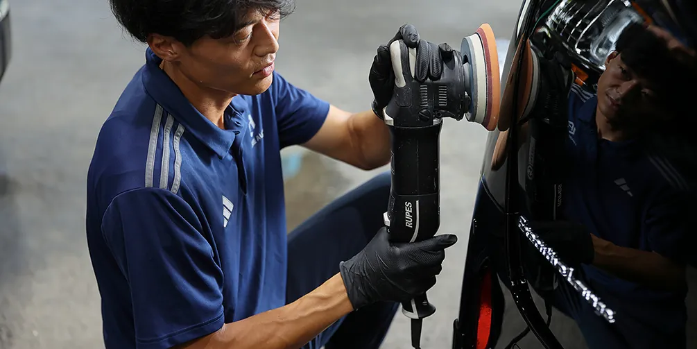 塗装面の汚れや微細な傷を丁寧に除去し、コーティング剤が最大限の性能を発揮できる状態に整備。