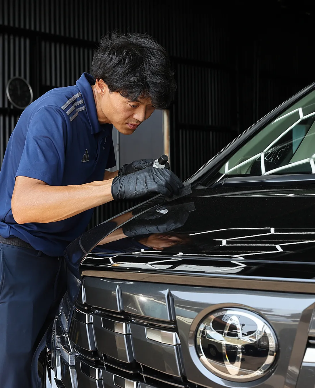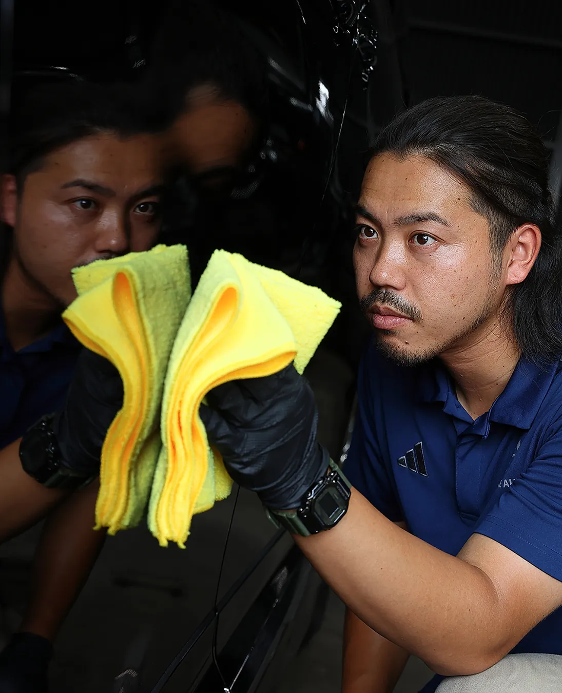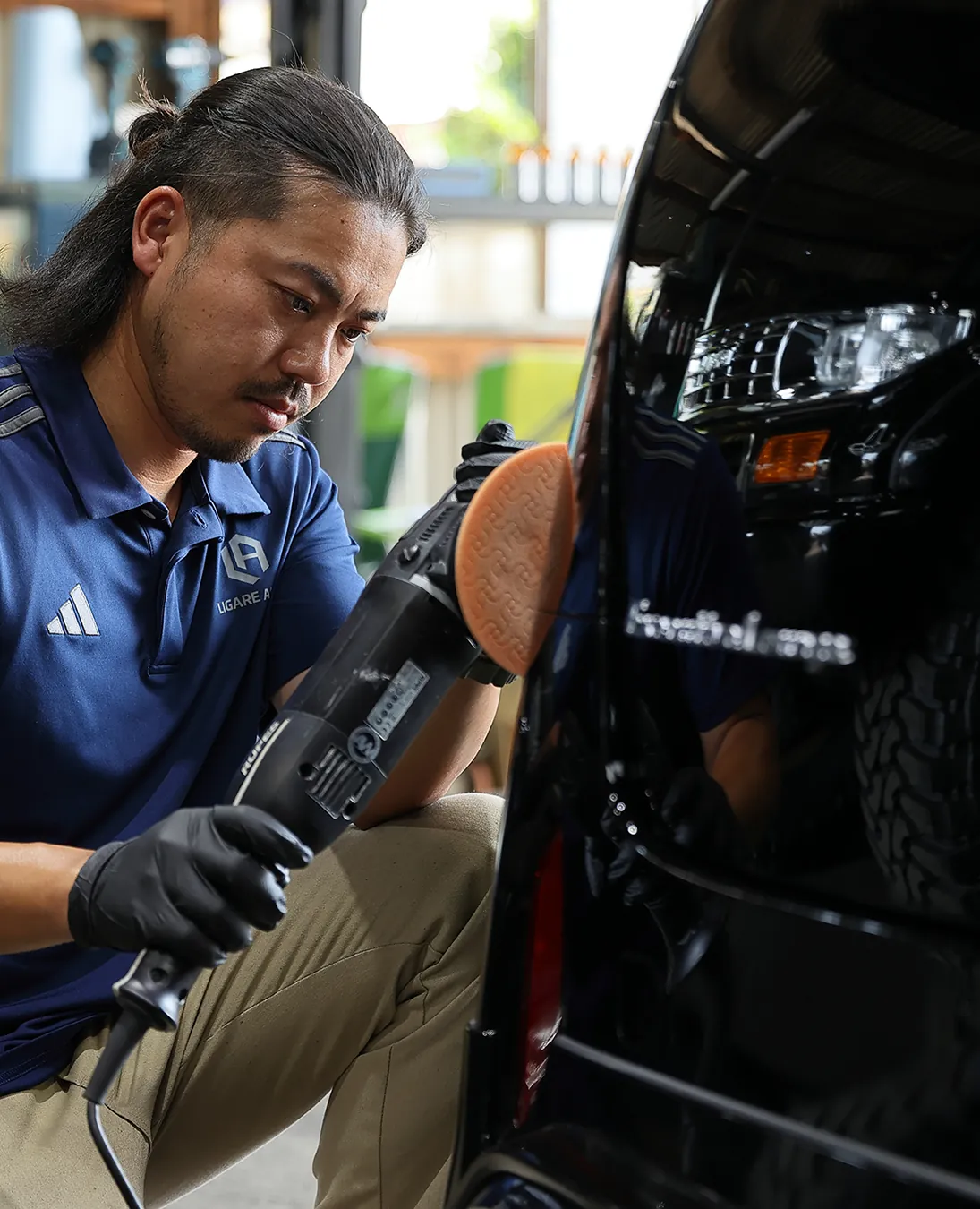 また、車をキレイに保つことにもこだわりがあり、元々は自分の愛車を磨くことから始めたカーコーティングに、今では本格的に取り組んでいます。仕事終わりの時間を使って夜な夜な磨きを練習し、各種講習会にも参加しながら、日々技術を磨いています。